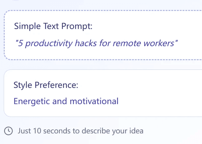 Enter a simple text prompt describing your video concept. Add a few words about the tone or style you want.