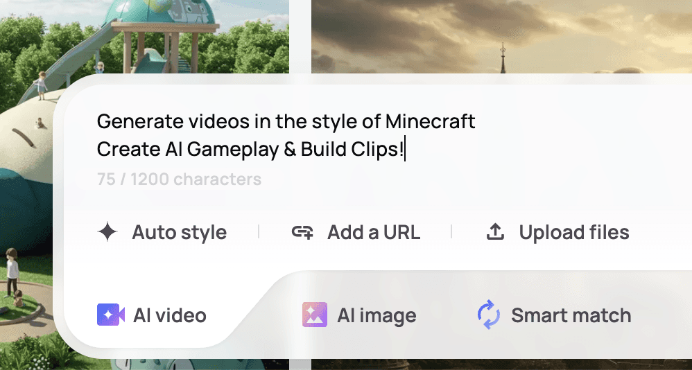 Turn prompts into AI-generated Minecraft gameplay & build animations