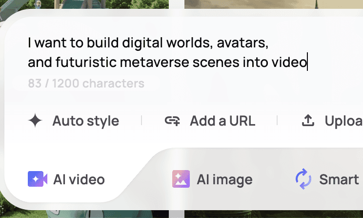 A Metaverse Video Maker uses AI to turn 3D avatars, digital environments, and futuristic concepts into dynamic videos. Ideal for creators, brands, and educators who want to express ideas visually across virtual worlds.