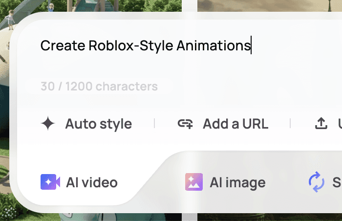 Create AI‑powered Roblox animation videos in minutes — just describe your scene or upload your character, and Medeo handles the rest.